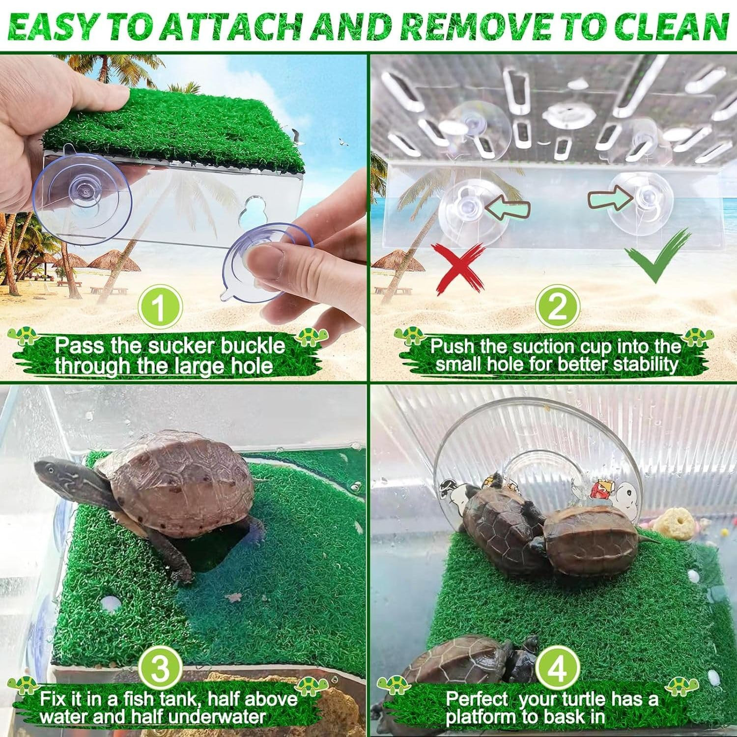 • ?【Thick Turf & Unique Design】This turtles deck's thickened artificial turf attracts turtles to climb on and bask in the sunshine, providing your reptiles with excellent traction so they can bask in comfort. The newly upgraded opening design and integrated injection molding process of this aquatic turtles tanks accessories not only make the turtles platform breathable and less prone to water accumulation, but also ensure a stable installation.