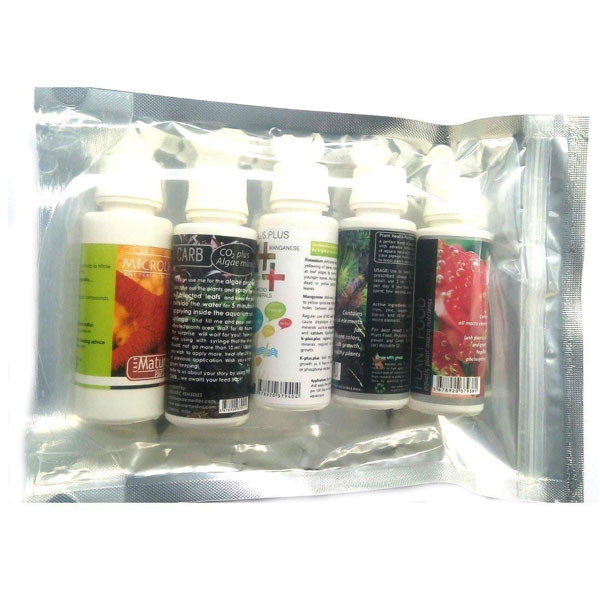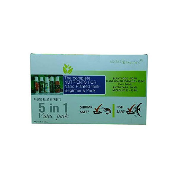 The complete nutrients for nano planted tank beginner’s pack - plant food – 60 ml – macro nutrients plant health formula – 60 ml – micro nutrients and iron k++ - 60 ml – potassium + manganese supplement for greenish plantsphyto carb - 60 ml – liquid carbon supplement micro life s2 – 60 ml – bacteria suspension for plants and fish plant health formula a perfect blend of aquatic plant micro nutrients packed with advance formulation to create wonderful mimic of aquatic natural eco system and tropical rain forest colour pigment formation. Supply essential micro elements to boost plant's natural coloration and health. 5 In 1 fertilizer pack for planted aquariummacro + micro + organic carbon + potassium + beneficial bacteriaboost and enhance plant growth and health category/categories - 1 algae removers2 plant fertilizers caution - keep out of reach of children.