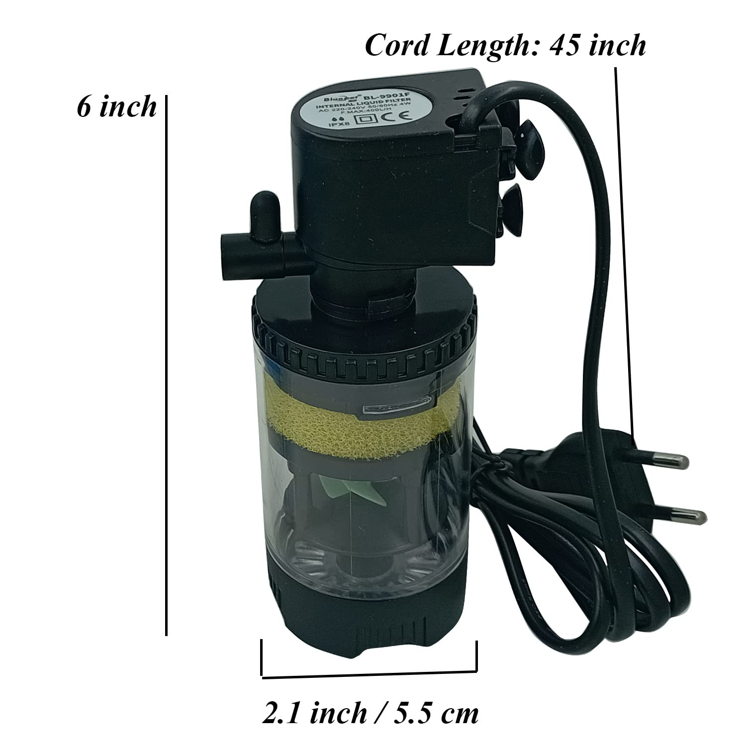 The filter sponge absorbs dirt & clears the water. Fully submersible and ideal for any aquarium filtration. Power: 4W, Flow MAX: 400 L/H , Frequency: 50/60Hz. Pure Copper Motor. Single Cartridge. More Silent and Powerful. Better Aeration. Full Adjust Ability. Crystal Clear Water.
