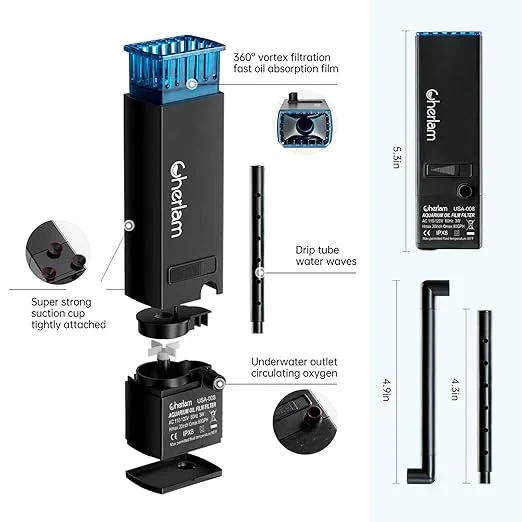 CHERLAM Aquarium Surface Protein Skimmer,3W Fish Tank Protein Skimmer