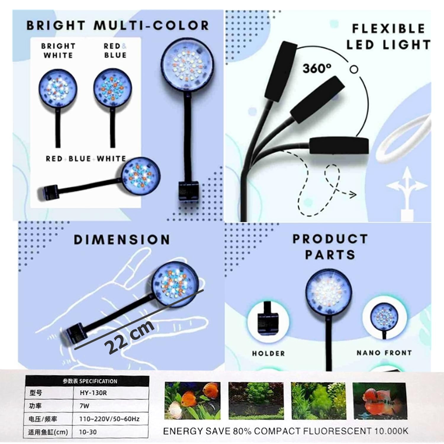 Multicolor Mini Led Clip Lamp|7 Watt Light for Salt Water Coral Small Clip Light for Fish Tank Huayao Hy-130R Plastic, Pack of 1