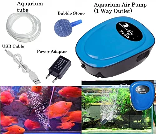 RS Electrical RS-313 AC/DC Aquarium Air Pump with Airtube and Airstone | Power: 1W | Flow :1.5L/min)